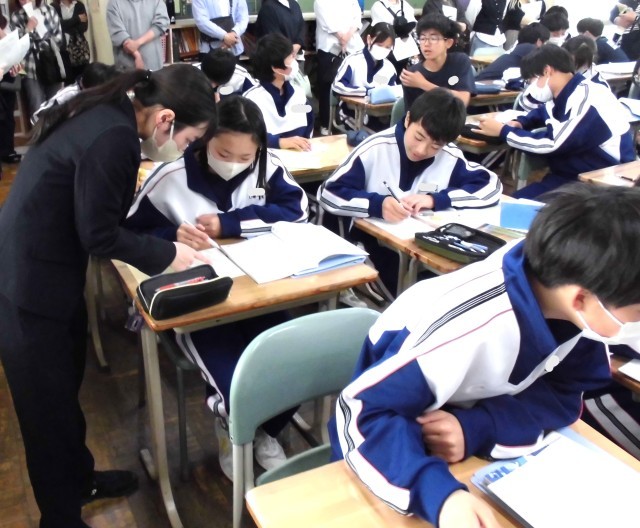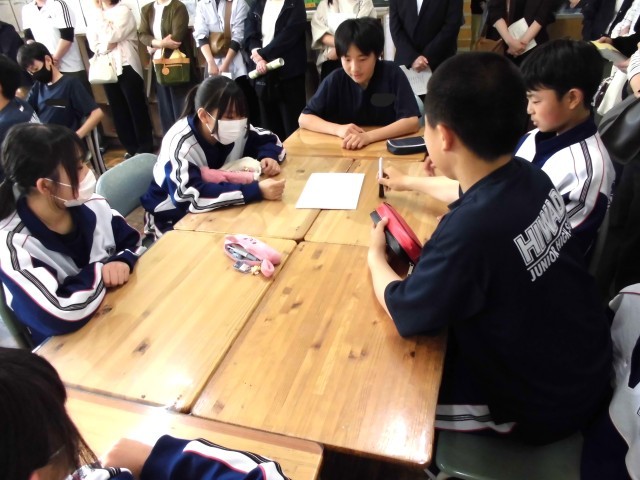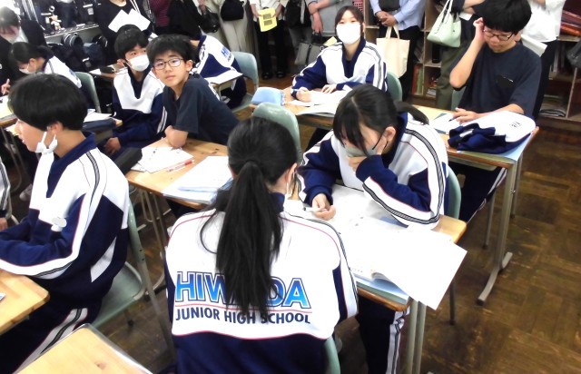 金曜日の授業参観では、多数の保護者の方に授業を見ていただきまして誠にありがとうございました。今回は第1回目ということで、各担任の教科の授業でしたが、1組は数学で問題演習を中心に、2組は英語のクイズ形式の授業を行ないました。保護者の方が教室に入るため、緊張しないか心配していましたが、写真にあるとおり、普段通りに授業に取り組めたかと思います。本年度は年4回予定されていますが、昨年度と同様、1回は学級の枠から離れ、学年道徳を行なう予定です。多数の参観をお願いします。