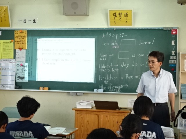 「守りたい日本の動物たち」を題材に、ペアになって絶滅が危惧される動物の状況について会話しました。
