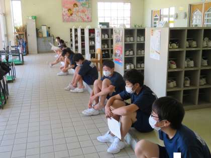 1人が終わるごとに検査台を消毒するため例年よりも時間がかかっていましたが、待っている1年生は間隔もしっかりと空け、静かに待っていました。