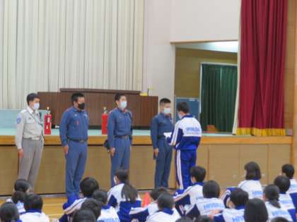 今回は日和田地区の消防署より4名の先生をお招きし、消火器の使用方法を含め避難経路の確認と学習をしました。