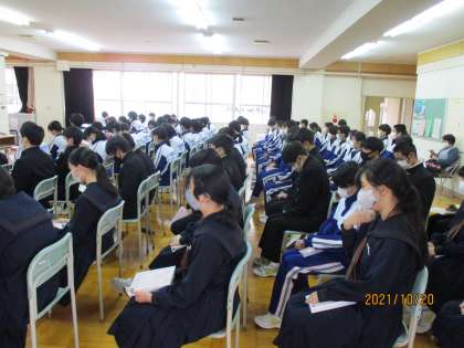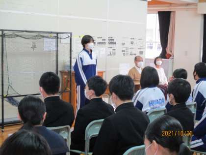 本日3年生は、明日からの修学旅行へ向けて結団式を行いました。体調を整えて、元気に出発してほしいと思います。