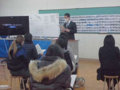 2学年では、来週から始まる進路対策教材の使用方法と冬休みの生活等の説明が各担当からありました。