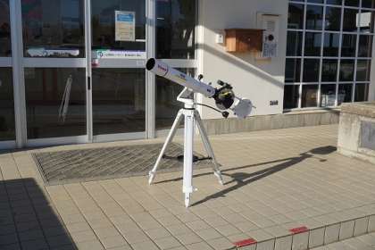 今日は、職員玄関前に設置した天体望遠鏡を使って「太陽の黒点」の観測をしました。残念ながら、確認することができませんでした。