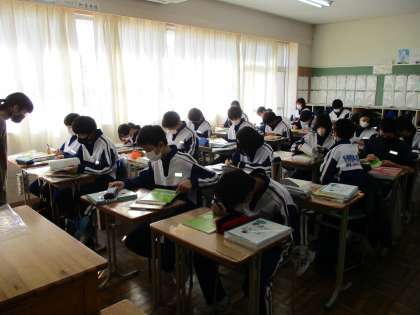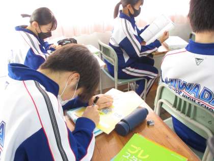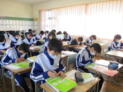本日2年生に進路対策教材を配布しました。来年の入試に向けて今までの学習内容を総復習していきます。本日から学習計画に沿って始めます。ご家庭でも引き続きご支援ください。