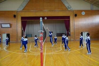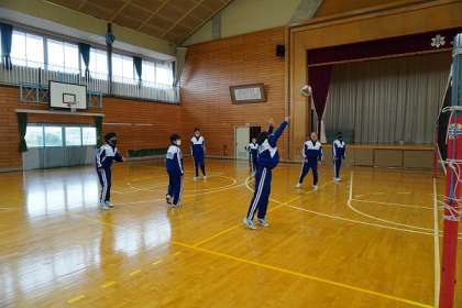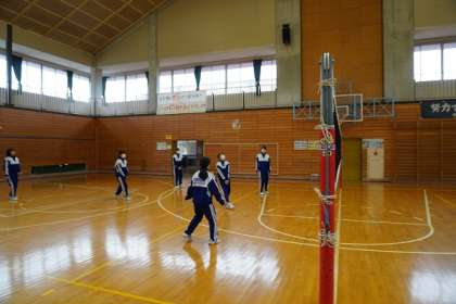 はじめに基本的なパスの練習を行い、その後男女ともチームに分かれ,ミニゲームを行いました。