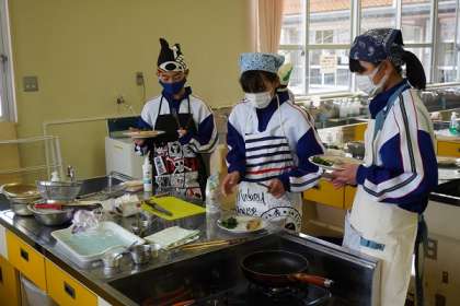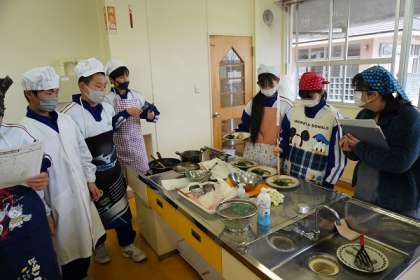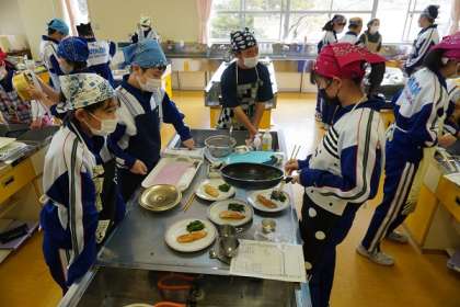 時間内に手順よく、そしておいしく仕上がるよう協力して調理います。