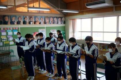 卒業式で歌う「3年生の歌」の練習です。ほんとうに心に響きました。