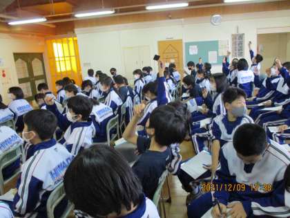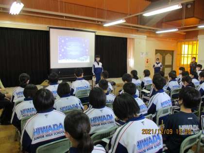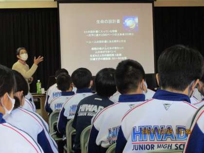 本日の1年生総合の授業で、性に関する学習会を行いました。自分たちがどの様に誕生し、育まれていたのかを学びました。また、人の細胞で、肉眼で見ることができる受精卵の大きさに穴が開いた紙をかざして、大きさを確認しました。