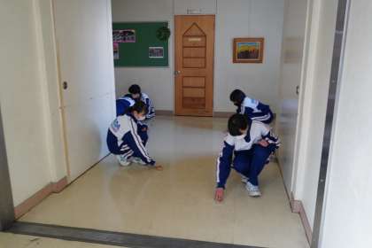 1年生も「無言清掃」が定着し、一言も会話をすることなく、隅々まで集中して清掃に取り組んでいます。