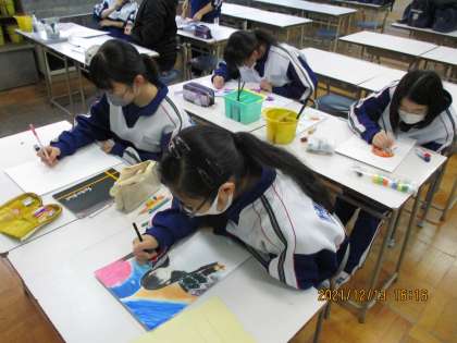 本日、美術部の活動風景です。各個人で、絵を描いています。