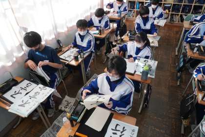 「書写」の学習です。今日は、「書きぞめ」の練習をしました。