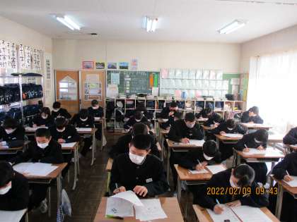 本日は、1.社会 2.音楽・美術 3.数学 4.理科の順に定期テストを実施しました。