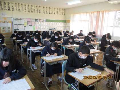 本日2年生も、1.社会 2.音楽・美術 3.数学 4.理科の順に定期テストを実施しました。