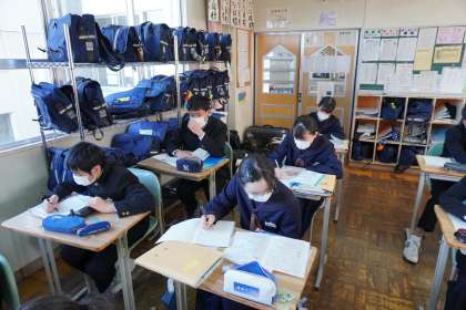 定期テストの解答の確認をやりました。ミスをしたところは、しっかりと復習して確実に覚えたいですね。