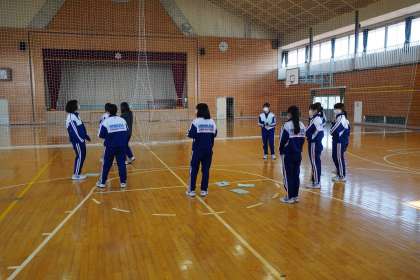 「ダンス」の授業が始まりました。今日はダンスの構成について話し合いました。近距離での話し合いができないのでたいへんです。