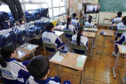6校時目に全校生対象の「卒業式の礼法指導」がありました。新型コロナウイルス感染防止のため「Zoom]を使い、オンラインで各教室ごとに行いました。