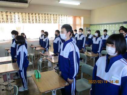 卒業式全体練習の様子です。1年生は、初めて中学校の卒業式練習に参加しましたが、落ち着いた雰囲気で取り組むことができました。