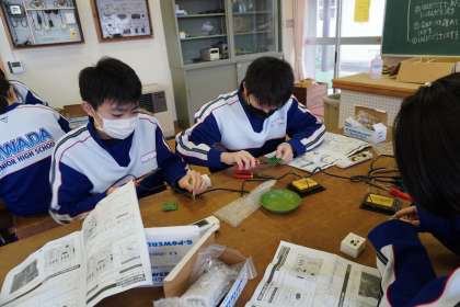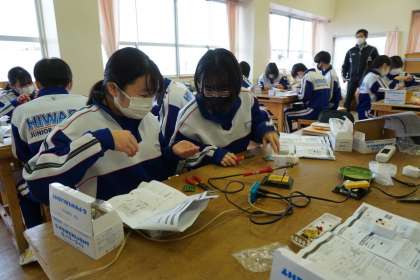「はんだ付け」の練習も終わり、いよいよ「e−パワーライト」の製作が始まりました。