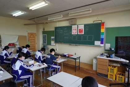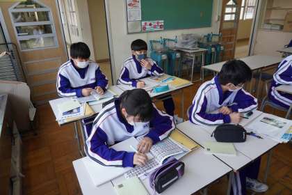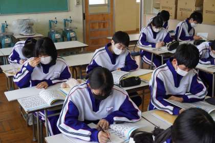 「篆刻(てんこく)」の授業です。彫る文字のデザインを考えました。