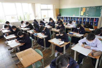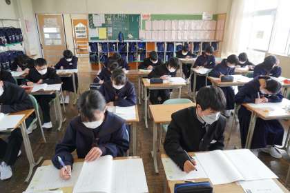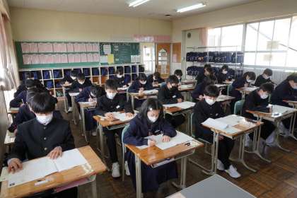 「ふくしま学力調査」の様子です。1,2校時に国語と数学のテストに取り組みます。3校時目は、学校や家での学習や生活に関する質問用紙に答えます。
