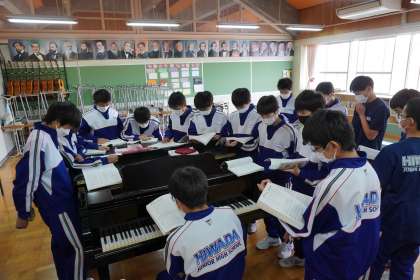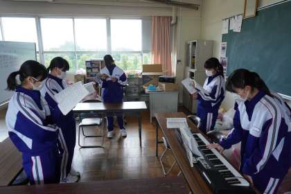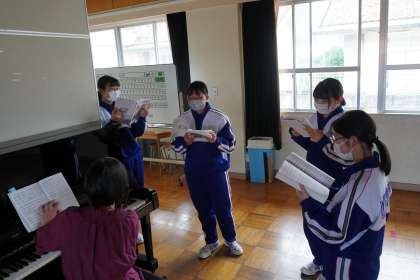 クラスの合唱曲が「友〜旅立ちの時〜」の決まりました。3カ所に分かれ練習をしました。