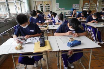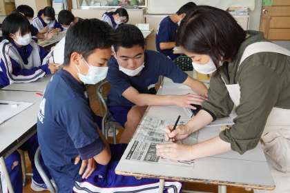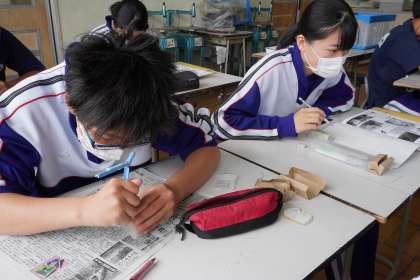 「印面」が仕上がった生徒は、様々な資料を参考に「もちて」の部分の制作に入ります。