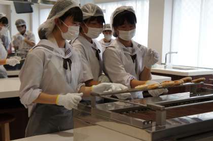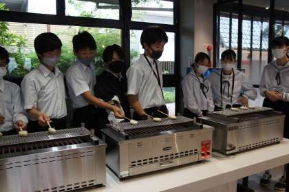 鐘崎笹かま館で、笹かまの手作り体験を行いました。