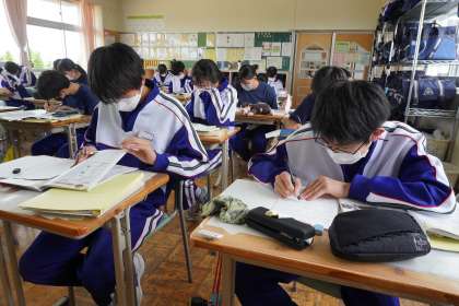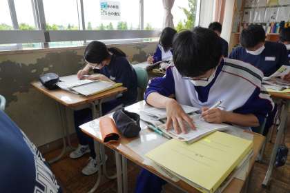 定期テストの範囲内の復習や要点の確認をワークブックを使って行いました。