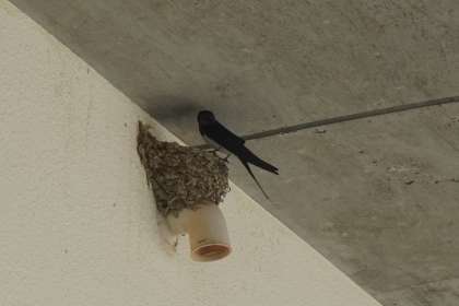 3−2教室の外にある巣につばめが帰ってきました。
