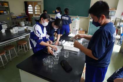 4種類の白い粉末の正体を、自分たちが計画した実験に基づき調べました。