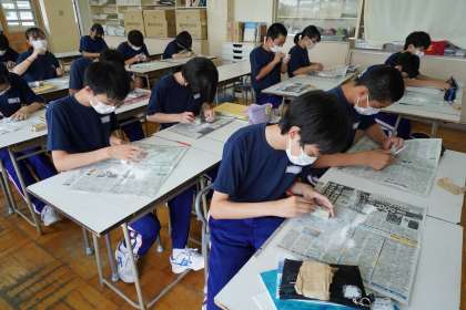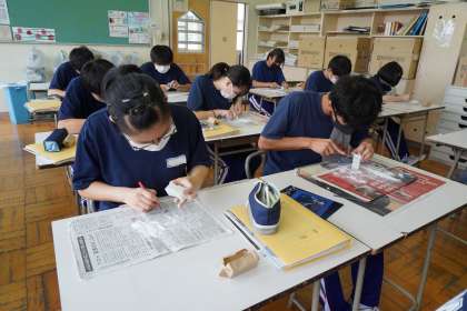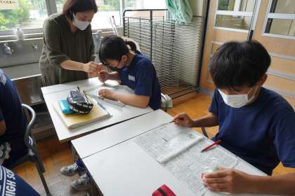 篆刻(てんこく)の「もちて」の部分が完成に近づいてきました。製作は2学期に続きます。