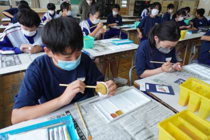 粘土で自分の好きな食べ物の形をつくり、色を塗りました。
