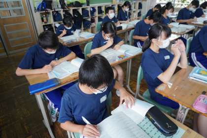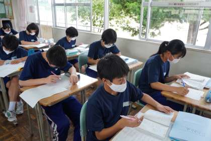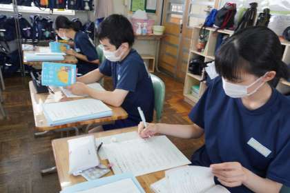 夏休み後に行われる「スペリングコンテスト(英単語テスト)」に向けて、1学期に学習した英単語の確認と練習をやりました。