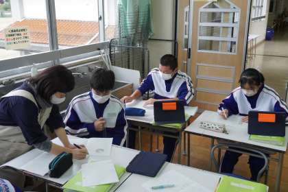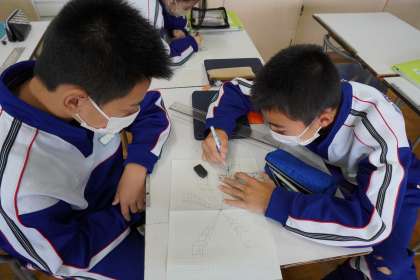インターネットで検索した図柄を参考にしながら、一点透視図法を使って「とびだす」または「吸い込まれる」ように見える構図をを考えました。