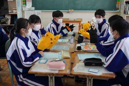 その後、教室で指人形の「寸劇」について話し合いをやりました。
