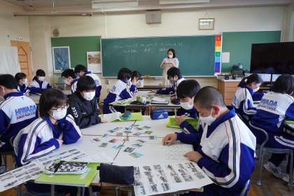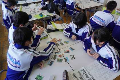 奈良・京都の世界遺産となっている建造物の写真を使って、かるたとりをやりました。