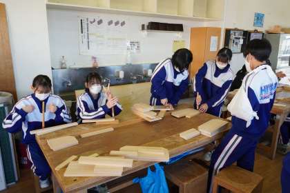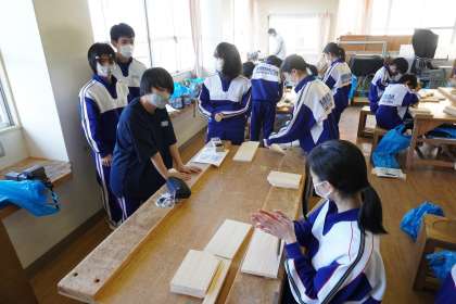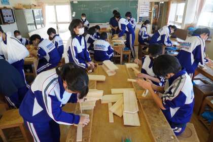 「下穴あけ」の後は、切断面のかんながけなど部品加工を行いました。