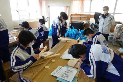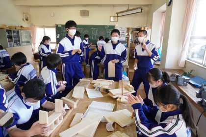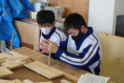 木材加工で、切断した部品の接合部分に下穴をあけました。