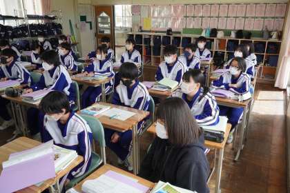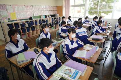最初の授業ということで、「なぜ社会を学習するのか」「ノートの使い方」「評価」などについて説明がありました。