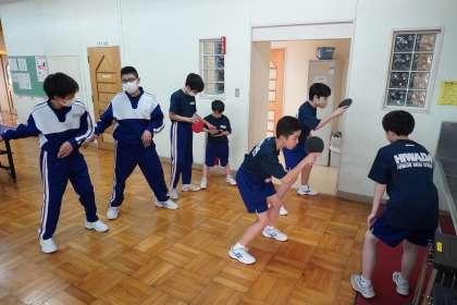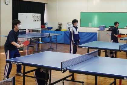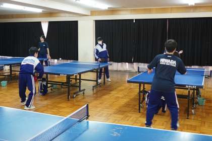 男子卓球部の練習の様子です。1年生は基礎からしっかりと練習しています。