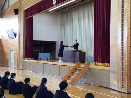 1、2、3年生の代表者が校長先生より任命証をいただきました。