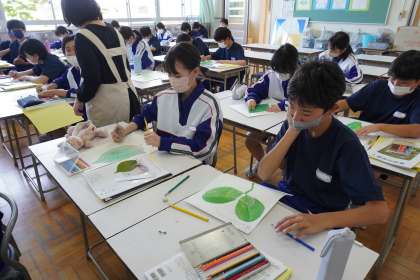 「葉」をよく観察してスケッチする活動の最終日です。