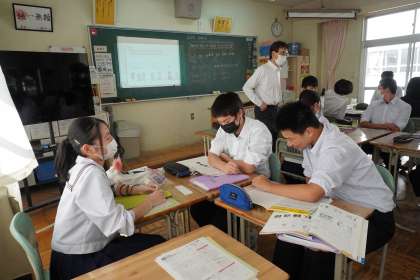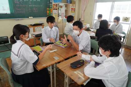 「人に〜〜〜を教える」「人に〜〜〜を見せる」の表現について学習しました。