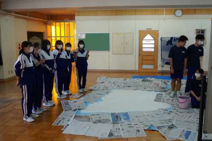 3年生がビッグアート制作に取り組んでいる様子です。本年度はどんなビッグアートが完成するのか当日が楽しみです。