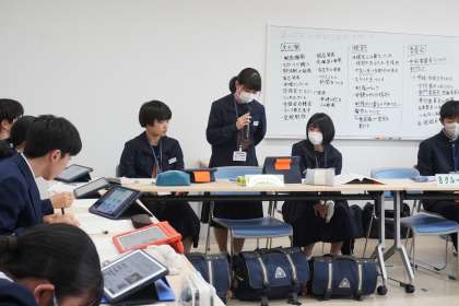 テーマは『よりよい学校生活を送るために、生徒会としてどのような取り組みをしているか』です。「行事」「校則」「委員会」「SDGs」について、各学校の具体的な取り組み内容の報告や意見交換が活発に行われました。