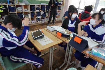 「飲酒と健康」の学習です。各自アルコールパッチテストを行ったり、飲酒の健康への影響を考えたりしました。最後に飲酒を勧められたときの断り方を練習しました。