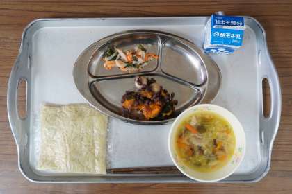 今日の給食は、ゆず塩タンメン、牛乳、冬至かぼちゃ、大根のキムチ和えです。