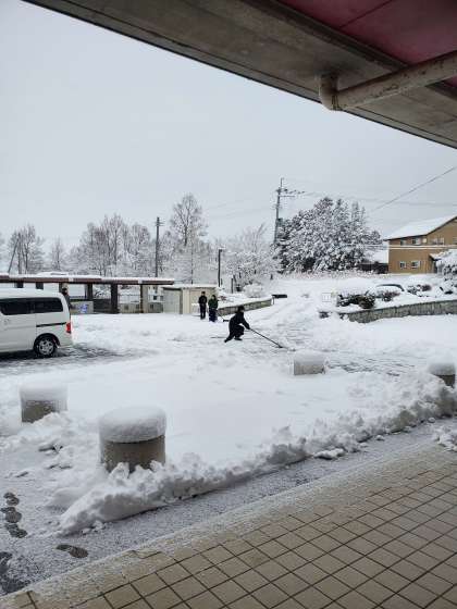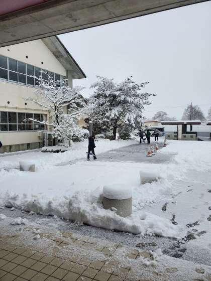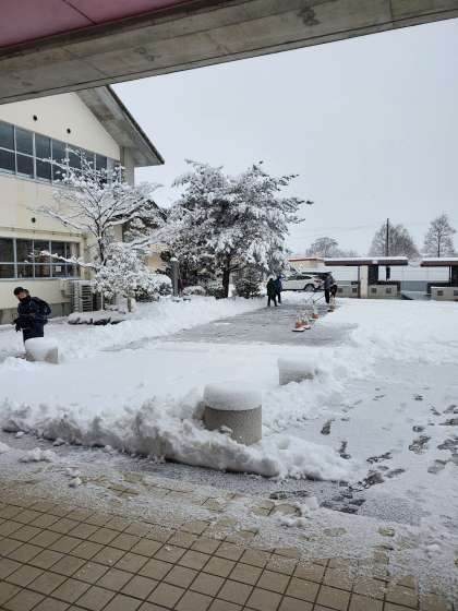 暖冬と言われる中、今年初めての大雪が降りました。朝早くから登校した生徒の皆さんが、雪かきを手伝ってくれました。手伝ってくれた生徒の皆さん、とても助かりました。ありがとうございました。