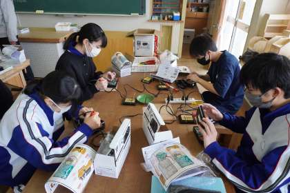 ライトやラジオの機能が付いた「ブラックハンディ」の製作の様子です。