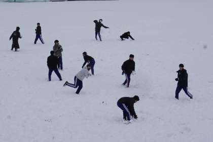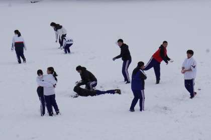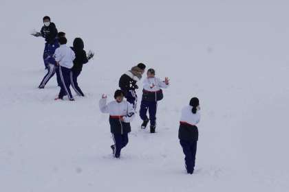 昨日から降った雪が校庭にもたくさん積もっています。生徒たちは、雪合戦などをして元気に遊んでいました。